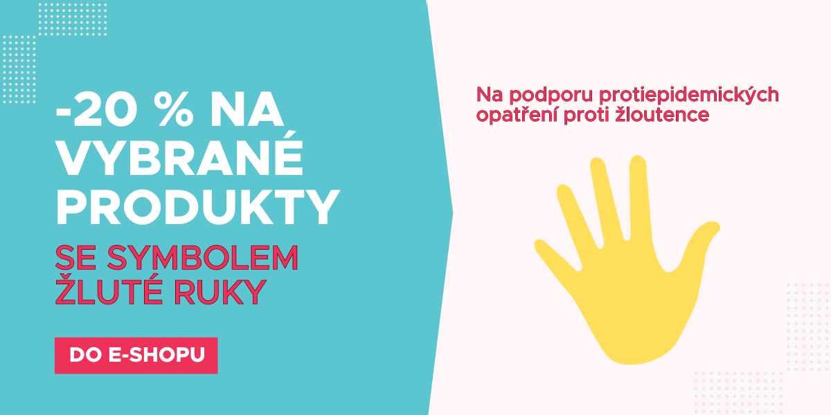 SLEVOVÁ AKCE: dezinfekční produkty na ruce a povrchy se symbolem žluté ruky nabízíme se slevou 15 % pro všechny, se slevou 20 % pro registrované uživatele - sleva se načte po přihlášení k zákaznickému účtu.