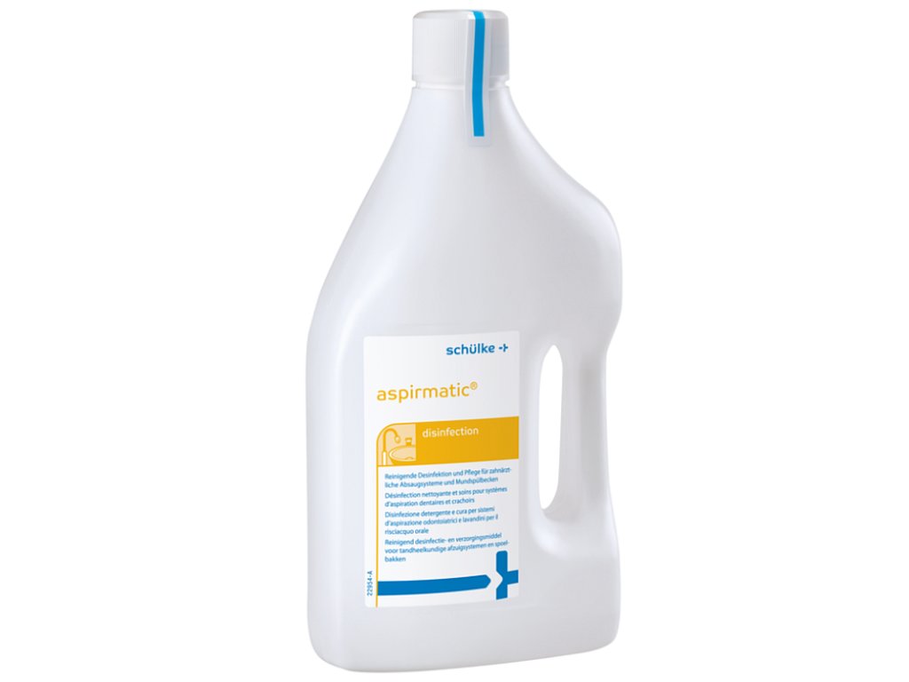 aspirmatic® je doporučeno používat 2x denně (v poledne a na konci směny). Pro každé jednotlivé zubařské zařízení se použije 2l pracovního roztoku o koncentraci 2% ( 40 ml přípravku aspirmatic® do 1960 ml vody). Z toho 1,5 litru se nechá nasát do odsávacích hadic a zbylý 0,5 litr se aplikuje do odtoku plivátka. Roztok přípravku aspirmatic® se nechá působit minimálně po dobu 30 minut (v průběhu obědové pauzy), případně přes noc.
