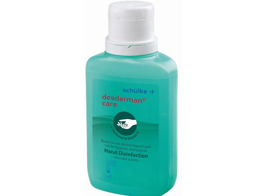 Hygienická dezinfekce rukou (EN 1500): aplikujte minimálně 3 ml přípravku desderman® care do suché pokožky rukou tak aby byla pokožka důkladně zvlhčena a vtírejte po dobu nejméně 30 sekund.