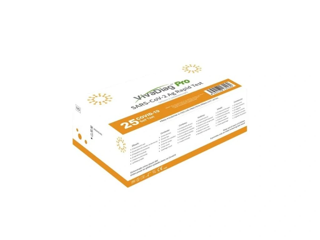 VivaDiag Pro SARS-CoV-2 Ag Rapid Test - slouží k rychlé a kvalitativní detekci antigenu nukleokapsidového proteinu ze SARS-CoV-2 ve vzorku získaného stěrem z lidské nosní sliznice,orofaryngeálního výtěru nebo nasofaryngeálního výtěru. Test je určen pouze pro diagnostické použití in vitro. Na základě vjimky MZČR, lze dočasně požívat i k samotestování, za předpokladu stěru z nosní sliznice.
